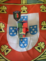 Como bom patriota tirei-lhe uma foto com a Bandeira Nacional em pano de fundo... embora como é natural nos dias que correm, a dita bandeira tenha "um certo ar" de ter sido feita algures na Ásia... a avaliar pelos castelos que tem mais ar de casa dos Estrunfes!