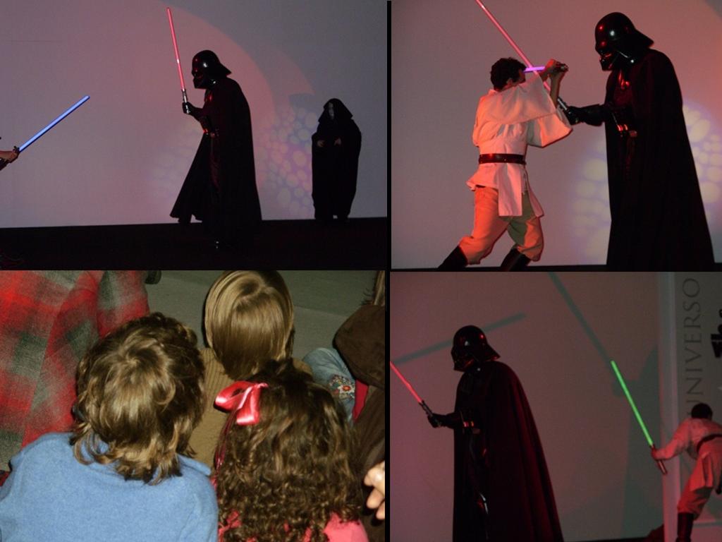 O espectáculo " Escola Jedi" organizado pela UAU-Produção de Ideias(http://www.uau.pt/) foi a "Cereja em cima do bolo",que agradou aos miúdos e graúdos com uma peça em que um Mestre Jedi e o seu Padawan ensinam algumas técnicas de combate/Jedi a algumas crianças que visitaram a exposição,sendo-lhes incutido também o código Jedi e a aprender a usar a "Força".