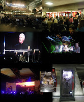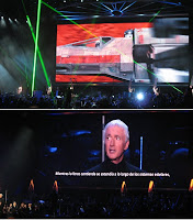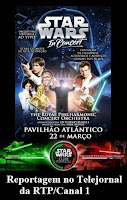 Podemos afirmar que o primeiro espectáculo do Starwars in concert que decorreu ontem no Pavilhão Atlântico foi um êxito,não só pelo espectáculo em si,mas também pela grande adesão de fãs da saga(cerca de oito mil) que quase encheram o recinto muitos deles trajados a rigor,outros com t´shirts ou sabres de luz.Este concerto que teve como anfitrião Anthony Daniels(o C3P) combinou a música dos seis filmes com a projecção de alguns momentos dos mesmos num imponente ecrã HD,acompanhado por uma orquestra ao vivo e um coro,contando a história de Starwars apesar de não ser cronológicamente,explorou no entanto as relações entre os personagens.Paralelamente ao concerto foi exibida uma exposição composta por vários trajes e objectos ,havendo também lugar a duas bancas de merchandising do concerto.