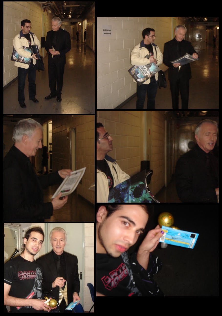 Aproveitando o facto de o actor Anthony Daniels estar no nosso país como o anfitrião do Starwars in Concert,tivemos o previlégio de nos encontrarmos com ele no final do espectáculo na zona do backstage onde além de lhe termos entregue uns souvenirs do clube,convidámo-lo a ser nosso membro honorário/vip entregando-lhe o respectivo diploma.Sendo o Anthony um gentleman,agraciou-nos com um autógrafo no bilhete e no programa do concerto que irá ficar guardado religiosamente nas nossas colecções.Agradecemos ainda ao João Brilhante da Mandrake por nos ter facultado o acesso ao backstage.