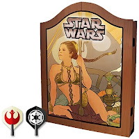 O jogo de dados Star Wars Dartboard foi baseado na litografia "Last daughter of Alderan" que foi desenhada pelo artista Adam Hughes para a SW Celebration/2006.Feito em madeira de alta qualidade,tem incluídas duas ponteiras para os dardos com os logotipos da Aliança rebelde e do Império.Com 25" de altura e 19" de largura,esta magnífica peça está em pré-venda na