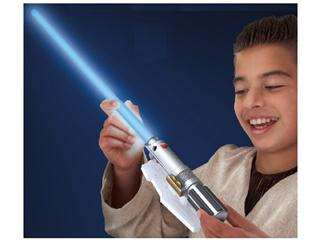 A Bigbadtoy Store tem para pré-venda um sabre de luz que permite escolher oito efeitos de luz diferentes,tem incluído um suporte para instalar o sabre na parede e um controlo remoto com modo manual e auto-spectrum.Funciona com 2 pilhas AA e com 3 pilhas AAA.Fabricante:Uncle Milton Industries