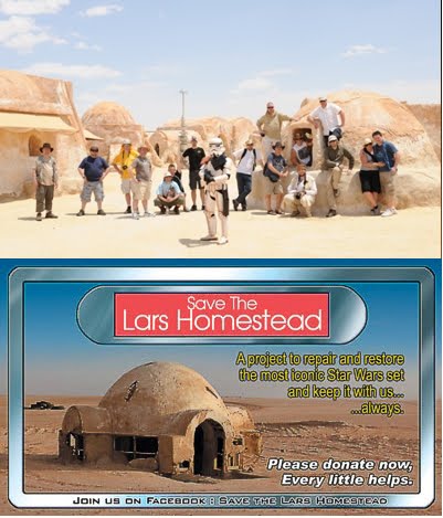 Todos os fãs de Star Wars decerto se lembrarão do famoso "Iglo"propriedade da família Lars em Tatooine,onde Luke Skywalker passou a sua infância.Esta icónica construcção que está situada na Tunísia,apresenta já alguns estragos provocados sobretudo pelo árido clima deste país.Um grupo de entusiastas da saga auto-intitulado "The Pioneers",resolveu pôr mãos à obra,restaurando esta construcção,mas para tal precisa de apoios finançeiros,e uma das maneiras mais simples para angariar fundos foi a de ter um website e uma página no Facebook,onde quem quiser ajudar pode doar algum dinheiro ou comprar o livro-guia "Tatooine Reunion"da autoria do nosso entrevistado Mark Dermul sendo uma parte da venda desse livro doada a esta nobre causa.