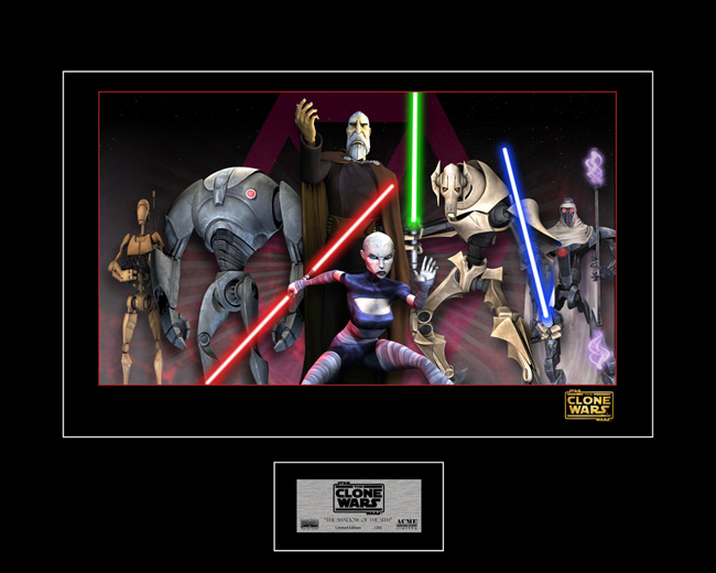 lançou um novo Set de Cell prints em papel giclee com as dimensões:16x20" da série animada Clone Wars,com edição limitada a 250 exemplares numerados com certificado de autênticidade.