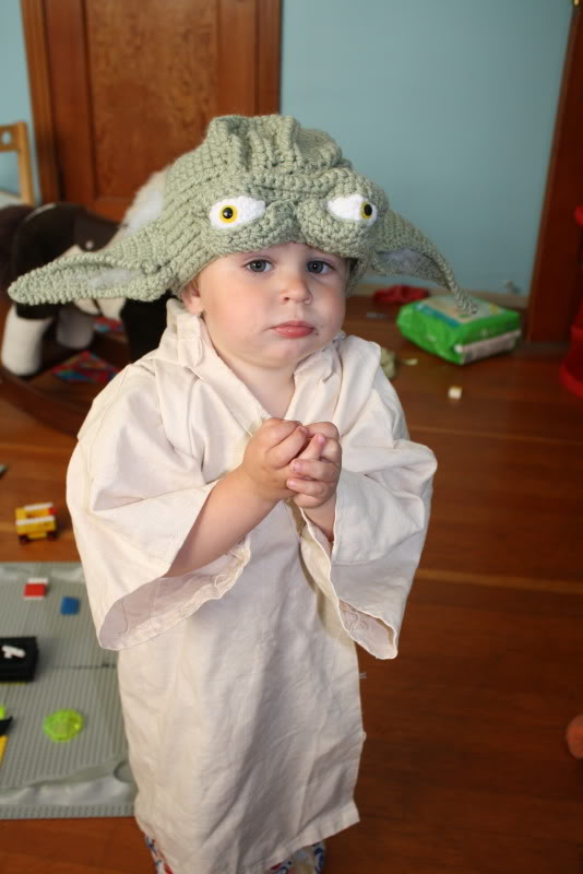 O filho de Tanya Edgar queria mascarar-se à Yoda no Halloween,foi então que a sua mãe decidiu fazer um chapéu em crochet com a cabeça desse mestre Jedi.