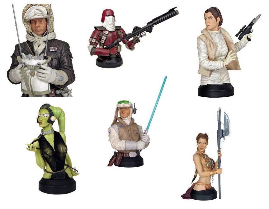 A http://forbiddenplanet.com/ tem disponível um conjunto de mini bustos de Star Wars,alguns deles em exclusivo fabricados em polystone com 6" de altura e que foram desenhados por Karl Meyer: Galactic Marine,Dançarina/escrava Oola,Leia/Hoth,Han Solo/Hoth,Slave Leia e Luke/Hoth.