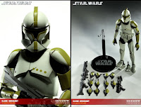 A Sideshow acaba de lançar mais uma estátua de 12" de um Soldado Clone;desta vez é a do Sargento Clone,Phase I.Com mais de 30 pontos de articulação,armadura e capacete detalhados,carabina longa e dois pares de botas,esta peça custa US$89,99.Fonte:http://www.sideshowtoy.com/