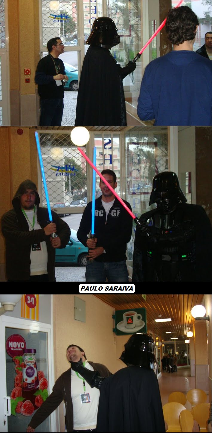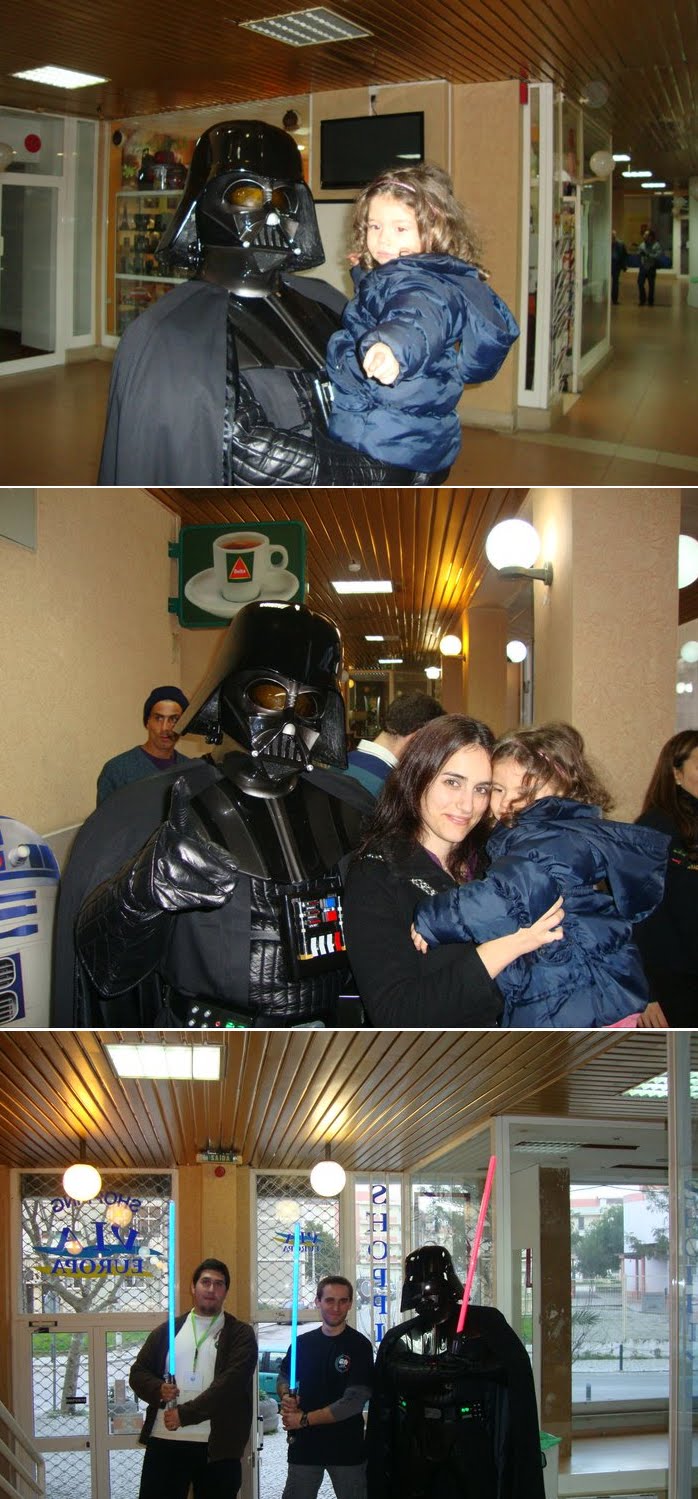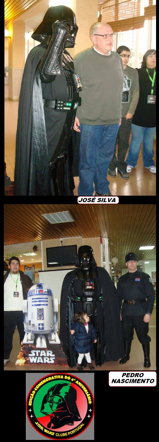 Terminada a nossa festa de aniversário(4º)e a primeira a ser organizada pela actual direcção em funções à pouco mais de um ano,podemos dizer que foi um sucesso,apesar de alguns pormenores que podiam ser corrigidos,mas ainda estamos no começo por isso merecemos algum crédito nestas andanças.Entramos a "bombar"com o grupo de percussão "Batucando"coordenado pelo nosso associado Luís Pereira,onde esteve inclusive um Vader Junior a tocar bombo e onde foi tocada a Marcha Imperial!seguidamente,exibimos um filme acerca das nossas actividades do ano passado e tal como prometido,tivemos a preciosa colaboração de três elementos da 501 st Legion Lusitanian Outpost,nomeadamente o Valter Santos,Rui Costa e Luís Alves,este último teve a gentileza de se trajar à Darth Vader,que se destacou entre os presentes.Acendemos as velas e cantamos os parabéns com um bolo alusivo e montamos uma banca de merchandising do clube.Só lamentamos o facto de muitos dos nossos associados e parcerias não terem podido comparecer por motivos de força maior,mas não faltarão oportunidades para nos voltarmos a encontrar e esperamos que este seja um de muitos aniversários que possamos festejar,agradecendo desde já a todos os que participaram e colaboraram nesta festa,e em especial à administração do Shopping Via Europa que nos cedeu as suas instalações,ao grupo de percussão "Batucando",aos elementos da Lusitanian Outpost e aos nossos sócios Pedro Nascimento que foi o elo de ligação para a organização desta festa neste espaço,assim como aos restantes sócios que ajudaram na parte técnica da exibiçâo do filme.Fernando Cruz e Gonçalo Pacheco.Um bem-haja a todos vós!