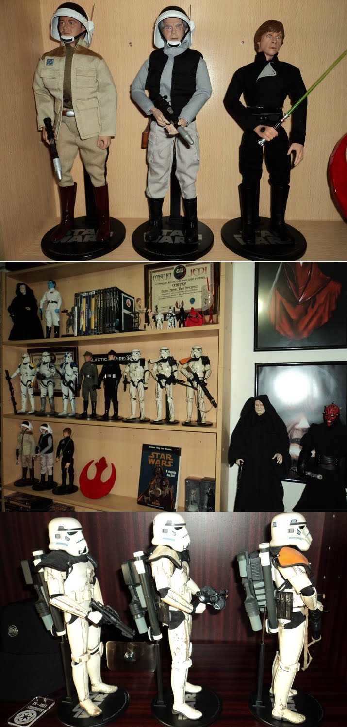 O nosso associado Pedro Nascimento tem adquirido recentemente várias figuras de 12",entre outros items,que merecem ser apresentados aqui.Destaque também para o seu traje de oficial do Império;aproveitamos esta deixa para vos sugerir que nos enviem fotos ,caso tenham trajes de Star Wars,pois estamos à procura de pessoal mascarado que queira participar no nosso próximo evento,mesmo que não sejam nossos associados.