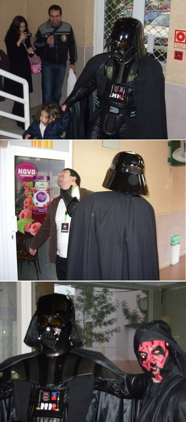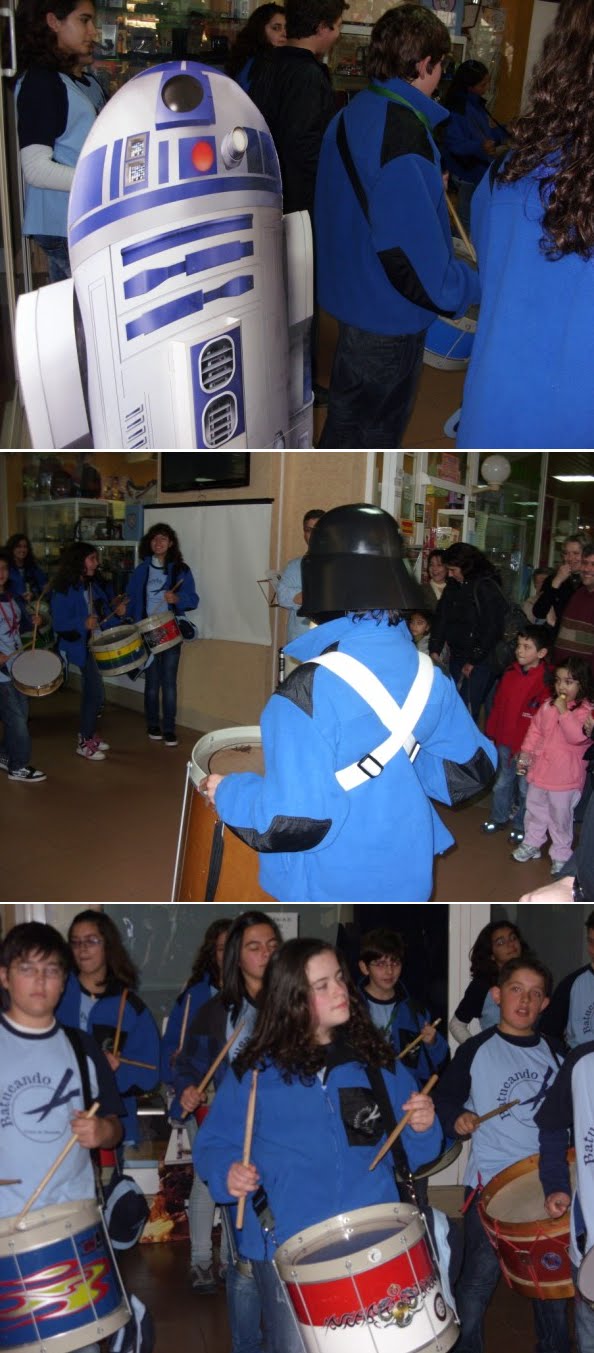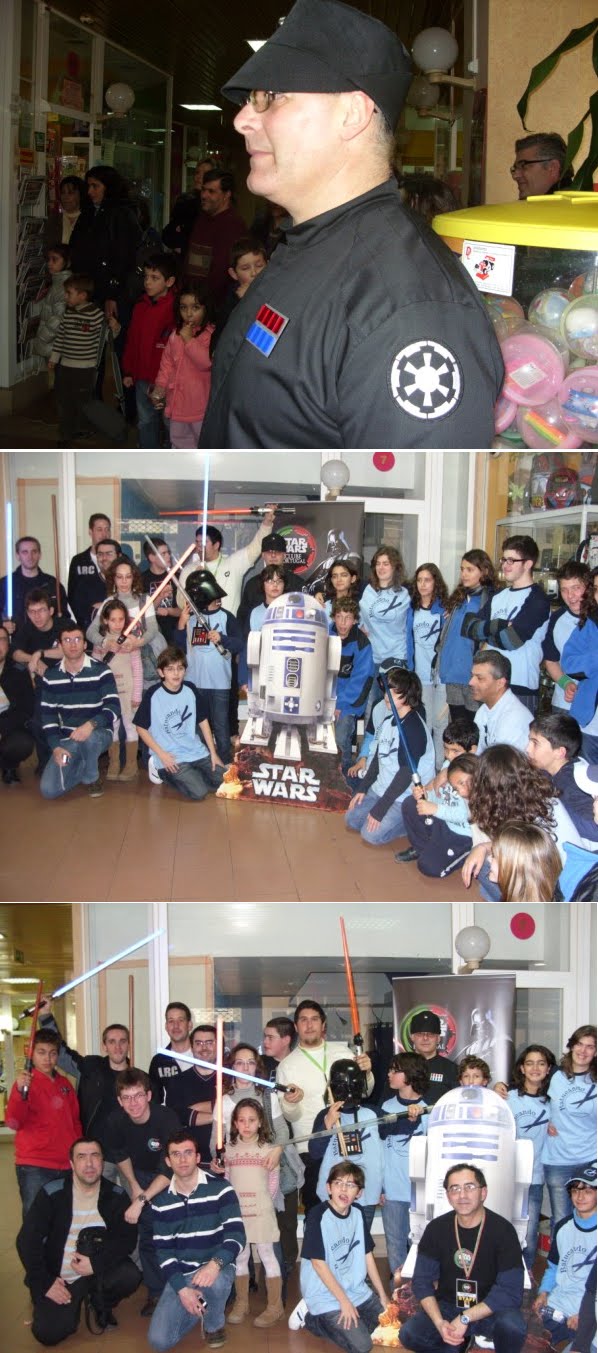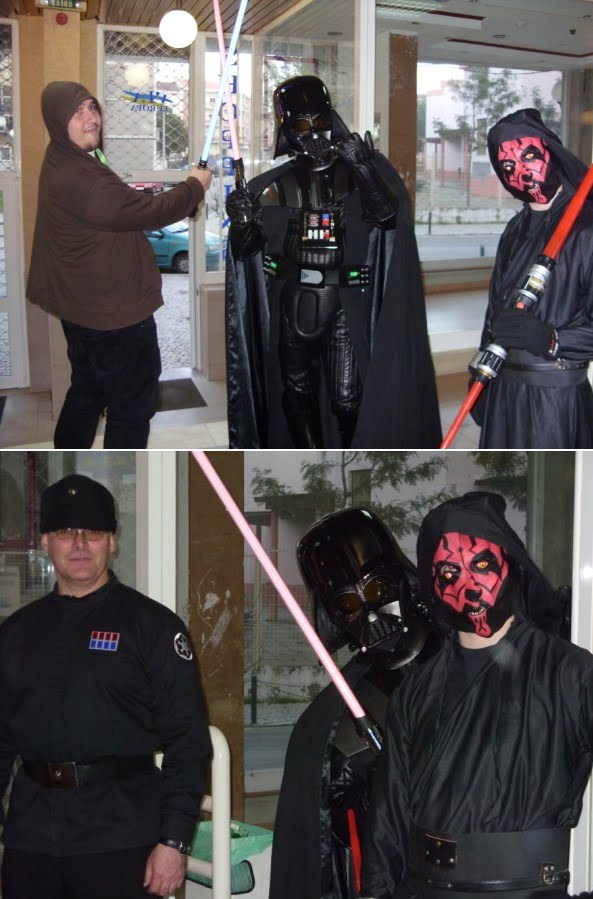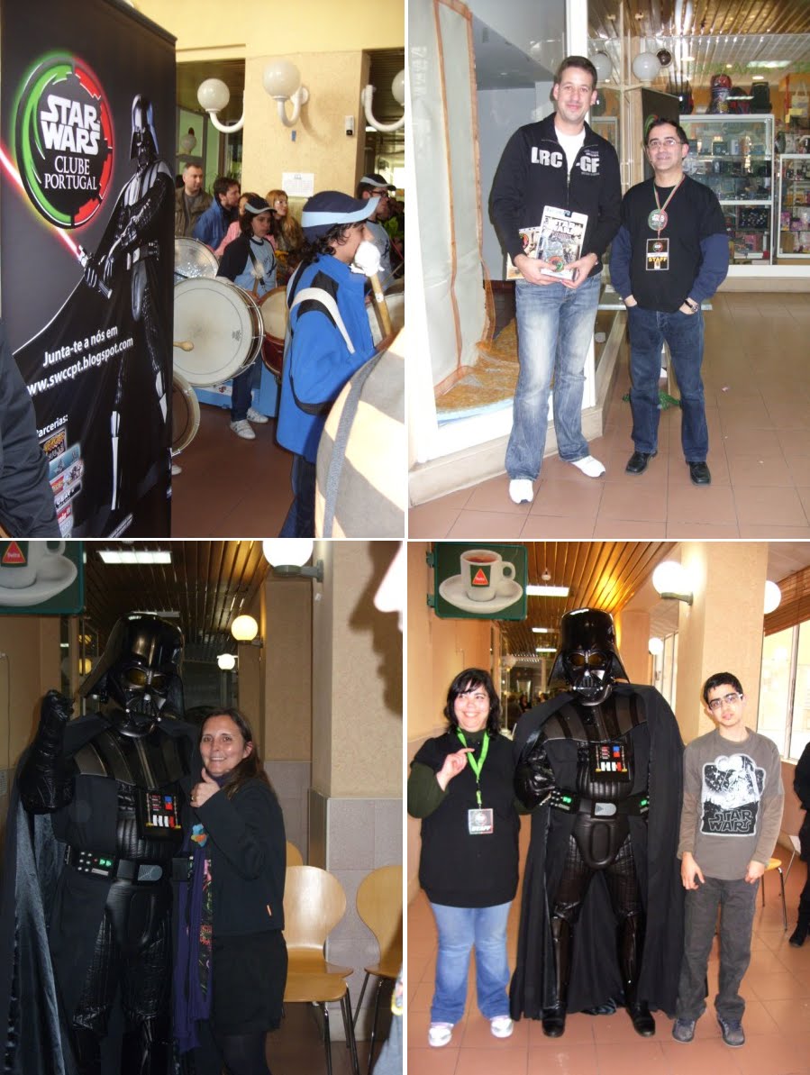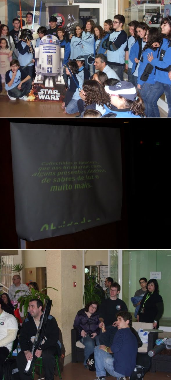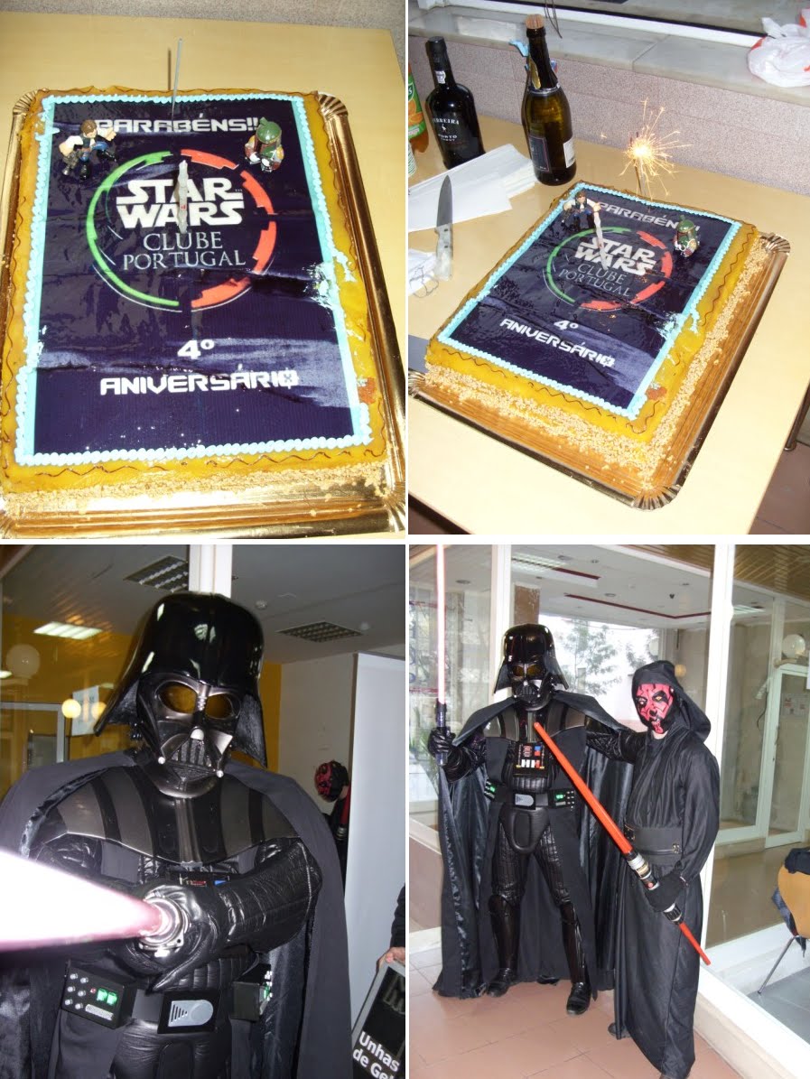 Terminada a nossa festa de aniversário(4º)e a primeira a ser organizada pela actual direcção em funções à pouco mais de um ano,podemos dizer que foi um sucesso,apesar de alguns pormenores que podiam ser corrigidos,mas ainda estamos no começo por isso merecemos algum crédito nestas andanças.Entramos a "bombar"com o grupo de percussão "Batucando"coordenado pelo nosso associado Luís Pereira,onde esteve inclusive um Vader Junior a tocar bombo e onde foi tocada a Marcha Imperial!seguidamente,exibimos um filme acerca das nossas actividades do ano passado e tal como prometido,tivemos a preciosa colaboração de três elementos da 501 st Legion Lusitanian Outpost,nomeadamente o Valter Santos,Rui Costa e Luís Alves,este último teve a gentileza de se trajar à Darth Vader,que se destacou entre os presentes.Acendemos as velas e cantamos os parabéns com um bolo alusivo e montamos uma banca de merchandising do clube.Só lamentamos o facto de muitos dos nossos associados e parcerias não terem podido comparecer por motivos de força maior,mas não faltarão oportunidades para nos voltarmos a encontrar e esperamos que este seja um de muitos aniversários que possamos festejar,agradecendo desde já a todos os que participaram e colaboraram nesta festa,e em especial à administração do Shopping Via Europa que nos cedeu as suas instalações,ao grupo de percussão "Batucando",aos elementos da Lusitanian Outpost e aos nossos sócios Pedro Nascimento que foi o elo de ligação para a organização desta festa neste espaço,assim como aos restantes sócios que ajudaram na parte técnica da exibiçâo do filme.Fernando Cruz e Gonçalo Pacheco.Um bem-haja a todos vós!
