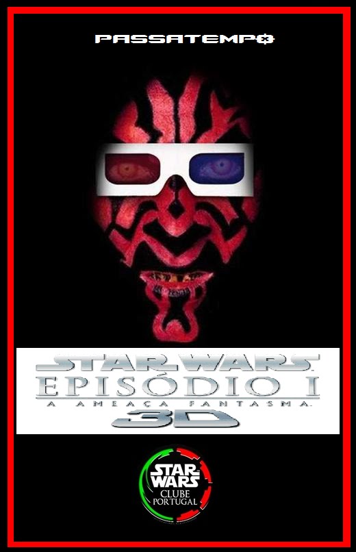 À semelhança do passatempo que a revista HD Magazine está a lançar em parceria com o SWCP:http://www.magazine-hd.com/artigo.php?id=1379 vamos dar início a partir de hoje a outro passatempo semelhante onde os vencedores ganharão um convite-duplo para a ante estreia do filme Star Wars:Episódio I 3D que decorrerá no dia 8 de Fevereiro nos cinemas Zon Lusomundo Alvaláxia (em Lisboa)e Zon Lusomundo Mar Shopping (no Porto).Para tal,os participantes terão de corresponder corretamente a três questões para o seguinte endereço: