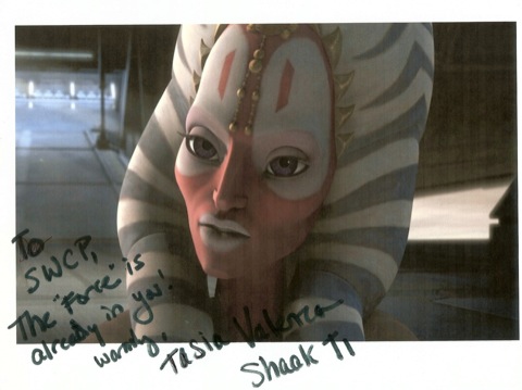 The American actress Tasia Valenza,was nominated for an Emmy in the role of Dottie Thorton in the 80´s series `All my children’. She was also a Volcano-woman in the series Star Trek: New Generation and the voices of Jedi Shaak Ti in the animated series SW: Clone Wars and Aurra Sing in the videogames SW Demolition and SW Galactic Battlegrounds.