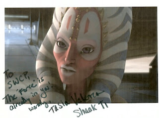 A atriz americana Tasia Valenza foi nomeada para um Emmy no papel da Dottie Thorton na série dos anos 80 `Al my children´.Foi também uma Vulcano na série Star Trek New Generation,a voz da Jedi Shaak Ti na série animada SW:Clone Wars e a voz da Aurra Sing nos videojogos Star Wars Demolition e Galactic Battlegrounds.