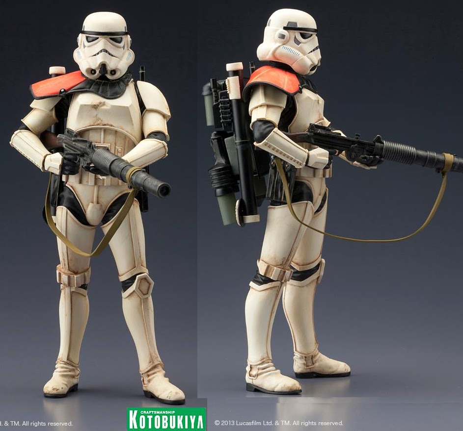 O fabricante japonês Kotobukiya apresenta mais um excelente pack de estatuetas da linha Star Wars ARTX: O Sandtrooper Squad Leader.São duas réplicas perfeitas à escala de 1/10 dos Sandtroopers que apareceram no deserto de Tatooine no episódio IV da saga.