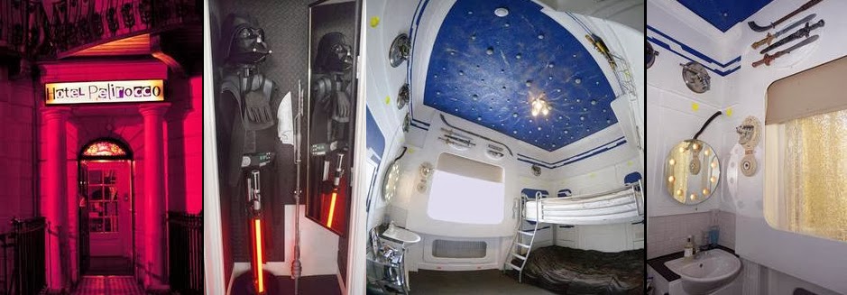 O Hotel Pelirocco situado em Brighton/Reino Unido tem quartos muito originais retratando temas como o Rock ou até mesmo Star Wars.O Lord Vader´s Quarters foi desenhado pelo artista Uzi 1960 e recria uma cabine da Death Star onde se inclui um traje do Darth Vader,uma coleção de memorabilia da saga,um mural da Galáxia,troféus Jedi e retratos da Leia e Luke Skywalker.Mais informação sobre este original hotel em: http://www.hotelpelirocco.co.uk