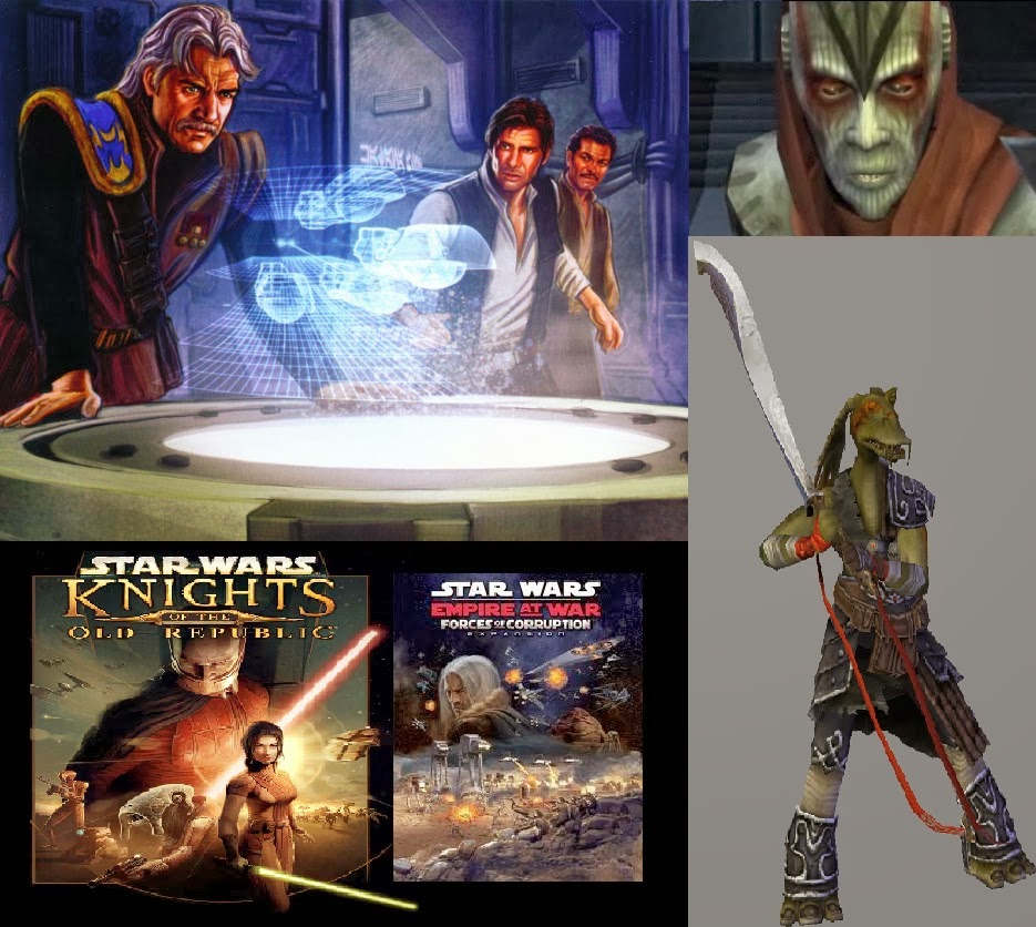 videojogos de Star Wars: Kotor e Forces of Corruption.