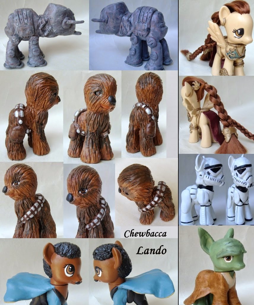 A artista Sheena Henderson lançou uma série de figuras My Little Pony,costumizadas em personagens de Star Wars.Estas peças podem ser compradas em: https://www.etsy.com/listing/104404382/custom-my-little-pony-yoda-star-wars