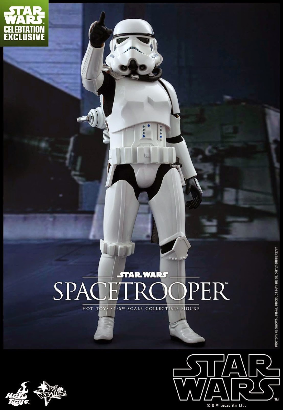 A Hot Toys apresentou na Star Wars Celebration a figura à escala de 1/6 do Spacetrooper.Esta unidade militar imperial,operava em ambientes sem gravidade e fez a sua primeira aparição nos filmes,quando a Millenium Falcon foi capturada pela primeira vez pela Death Star.Estes Troopers têm como armamento um Heavy Blaster,um Blaster Rifle e um detonador térmico.Fonte: Toyhaven.blogspot.ie