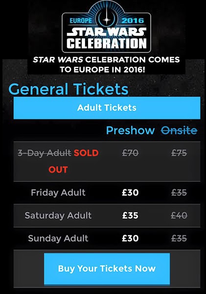 A antever um enorme sucesso no que respeita ao número de visitantes da próxima Star Wars Celebration Europe (III) que se realiza de 15 a 17 de Julho de 2016,os ingressos para 3 dias já estão todos vendidos a pouco menos de um ano do início do evento!