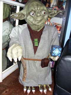 A fim de angariarmos fundos para organizar futuros eventos do nosso clube,estamos a vender alguns artigos,alguns deles bem originais feitos pelos nossos membros como é o caso deste Yoda á escala real .Mede cerca de 0,90 cm de altura.Cabeça e pés em látex,com roupa em tecido real e bengala em madeira.Inclui ainda uma cobra em plástico,um Jedi Holocron que acende uma luz no interior e uma mini coluna de som com cartão SD que contém algumas das frases mais icónicas deste personagem.Preço: 220,00 euros com desconto de 10% para os sócios do SWCP.