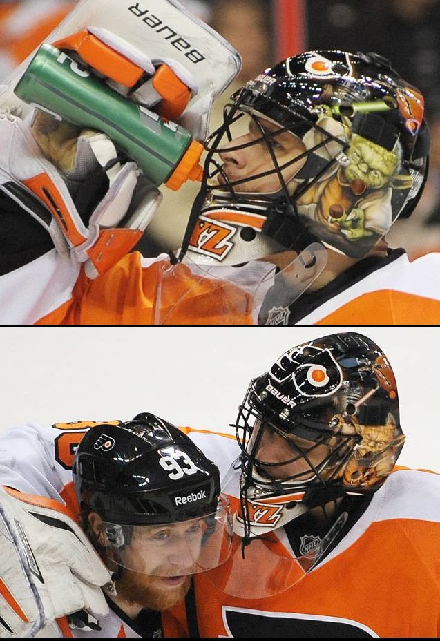 O russo Ilya Bryzgalov é o guarda-redes da equipa de hóquei em gelo dos Philadelphia Flyers e como grande fã de Star Wars que é,decidiu usar no seu capacete uma pintura como o Yoda,só que a LucasFilm estava atenta e não aprovou as cores do Yoda que não estavam iguais às do original e obrigou o manager dos equipamentos desta equipa a modificar a respetiva cor,ficando assim aprovada e até mais bonita.
