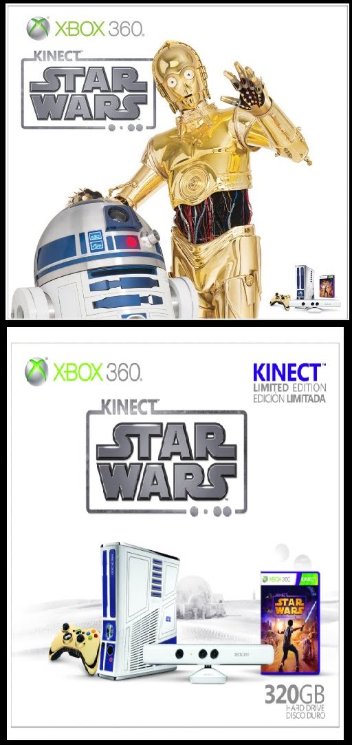 Após vários rumores sobre a data de lançamento da Star Wars Kinect Limited Edition Xbox 360,chega finalmente a data oficial :3 de Abril de 2012.Com capacidade para 320GB de armazenagem,esta consola tem incluídos os jogos Kinect Star Wars e Kinect Adventures onde os jogadores podem ser Jedi,pilotos de Pod Racers ou até de pilotar vários modelos de naves. Preço: US$449,00.Fonte: http://yodasnews.com