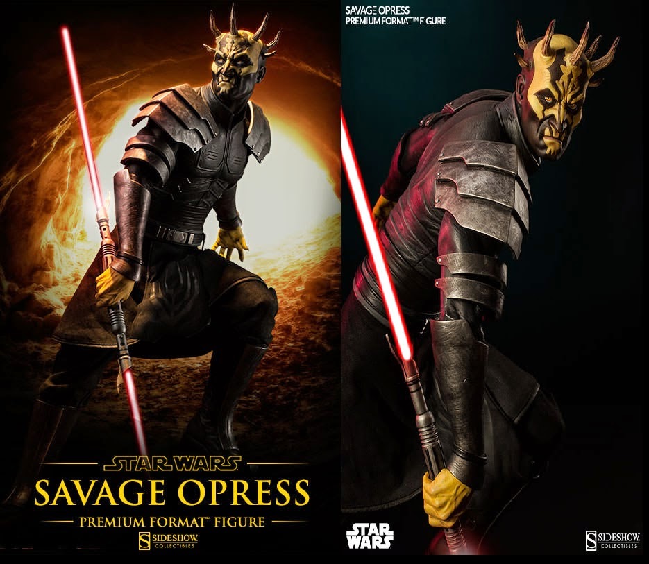 Inspirada na série animada em CGI,Star Wars:The Clone Wars,a Sideshow orgulha-se de apresentar a estátua do Savage Opress-O irmão do Darth Maul,em formato Premium(55,88 cm).Preço: US$399,00.