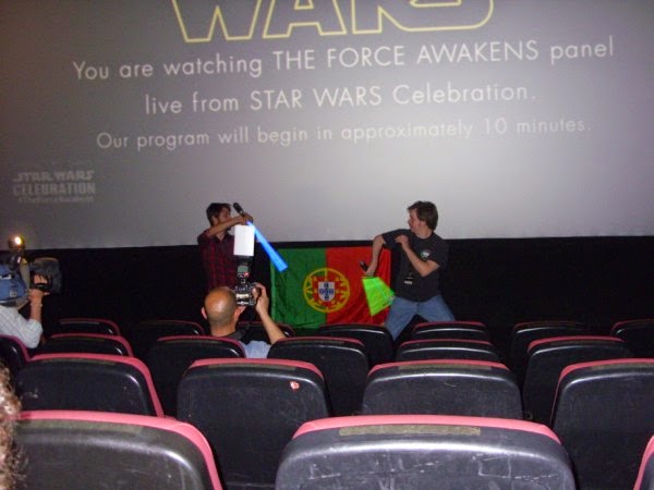 O SWCP marcou presença ontem numa das salas de cinema do Colombo para assistir à apresentação em live stream para vários países da Star Wars Celebration que decorre em Anaheim/California sobre o novo filme de Star Wars`O despertar da Força´que terá a sua estreia mundial em Dezembro do corrente ano.Num painel apresentado por Anthony Breznican da EW para uma platéia de 7500 fãs,contou com a presença do realizador J.J Abrams e Kathleen Kennedy,a atual presidente da Lucasfilm.