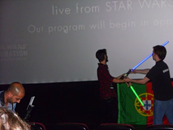 A emissão apresentada em Portugal,foi conduzida pelo Quimbé que como é costume incutiu muita energia aos espetadores presentes e contou ainda com a presença de 3 elementos da Legião 501 Portuguesa e com uma coreografia de duelos de sabres de luz efetuada por dois dos nossos elementos.Foi um final de tarde bem passada com alguns dos nossos sócios a marcarem forte presença com os seus sabres de luz e muita animação.Uma palavra de agradecimento à Disney Portugal pelos convites que nos foram facultados.Agora só nos resta esperar pela estreia de Star Wars:O despertar da Força e que corresponda positivamente às nossas expetativas!