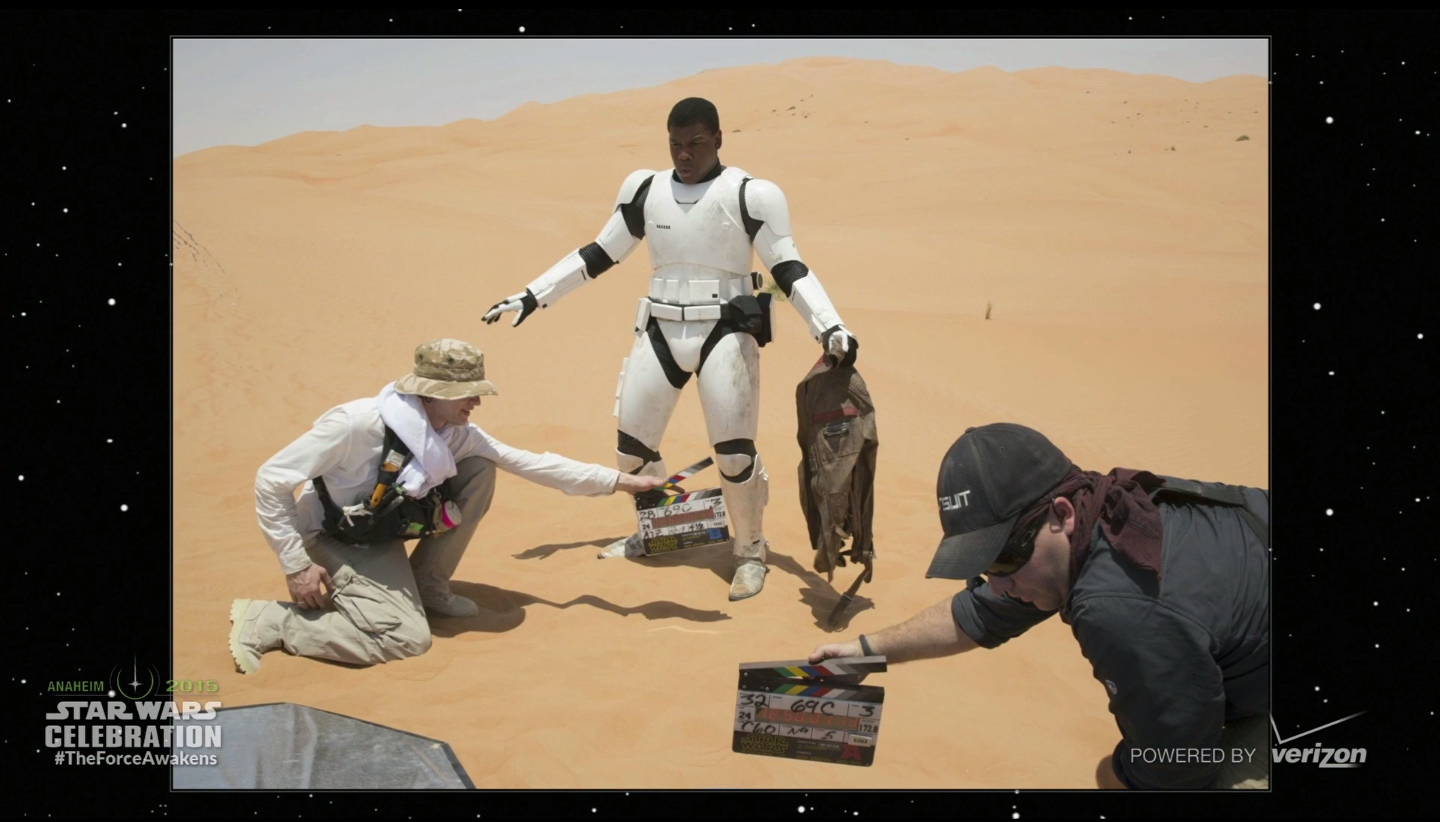 Antes de ser exibido o tão aguardado 2º teaser do episódio VII,eis que aparecem no palco quatro lendas vivas da trilogia clássica, que fazem também parte do elenco: Anthony Daniels,Carrie Fisher,Mark Hamill e Peter Mayhew.Harrison Ford não compareceu devido a estar ainda a recuperar do acidente aéreo que sofreu recentemente.Teaser 2: