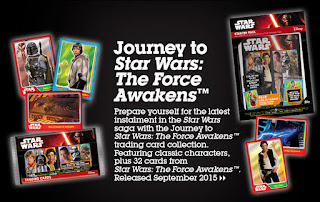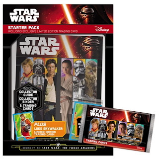 O fabricante de jogos de cartas colecionáveis Topps,apresenta a sua nova coleção intitulada Journey to Star Wars:The Force Awakens.Os pacotes com oito cartas estão a ser vendidos em alguns países europeus a 1,60 Euros e o Starter Pack a 7,99 Euros.Esta coleção além de apresentar personagens da trilogia clássica,inclui ainda 32 cartas do episódio VII.Fonte: www.toppsdirect.com